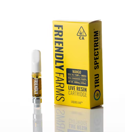 The FF – Mango – Live Resin Cartridge is a premium cannabis vape product designed by Friendly Farms (FF) to deliver an authentic, full-spectrum cannabis experience. Using an advanced live resin extraction process, this cartridge captures the natural essence of the Mango strain, preserving its vibrant terpenes and potent cannabinoids. Renowned for its tropical, juicy mango flavor with subtle herbal undertones, the FF – Mango cartridge provides a balanced high that combines cerebral uplift with soothing body relaxation. With THC levels typically ranging from 75% to 90%, it’s best suited for experienced users seeking both creative stimulation and effective stress or pain relief.