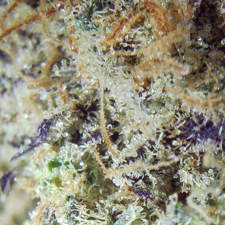 Astro Pink is a visually stunning strain with dense, sticky buds covered in a thick layer of trichomes.