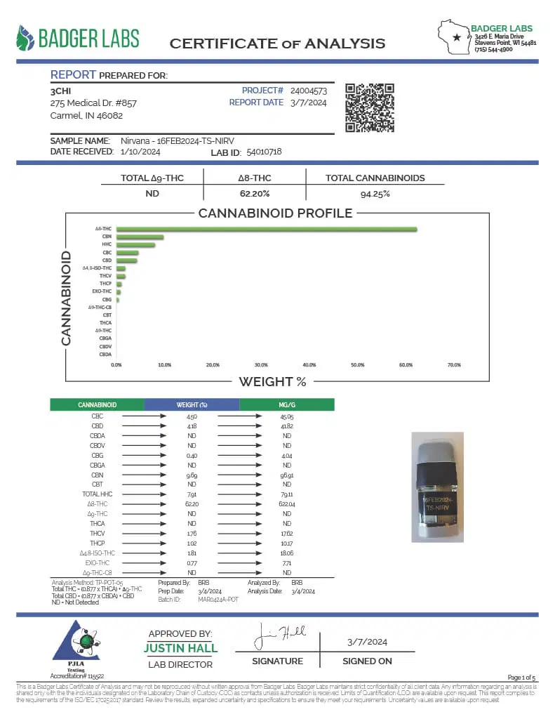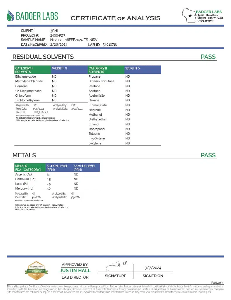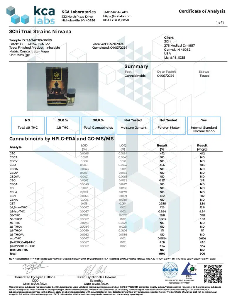All 3CHI products undergo rigorous third-party lab testing to ensure they meet high safety and quality standards. The Nirvana strain vape pod is free from harmful additives, ensuring a pure and clean THC experience. You can view lab reports on 3CHI’s official website for full transparency.