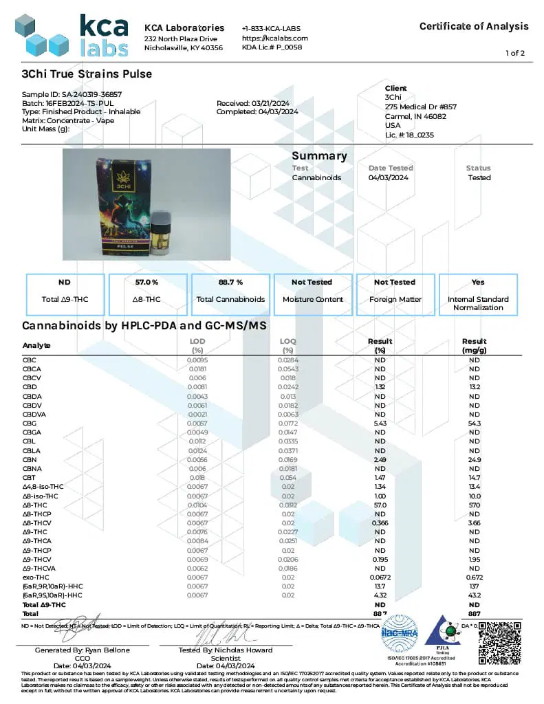 3CHI is committed to quality, safety, and transparency. Each True Strain THC Vape Pod is rigorously tested in third-party labs to ensure it is free from contaminants, heavy metals, and pesticides. You can view lab results on 3CHI’s official website for complete transparency.