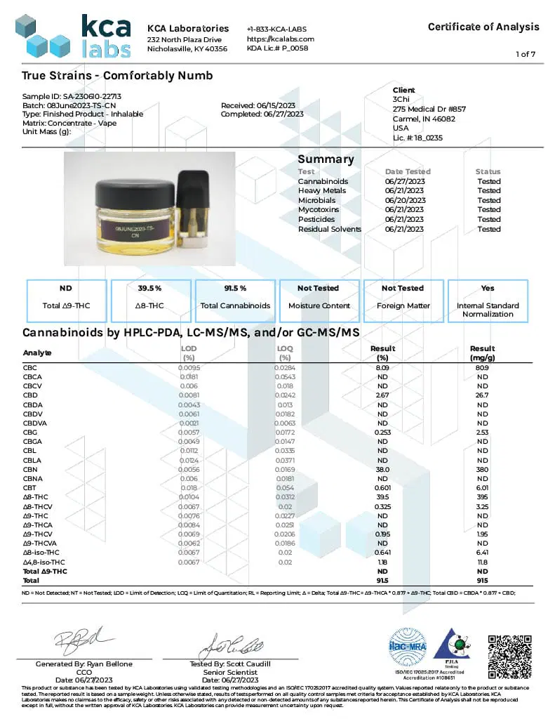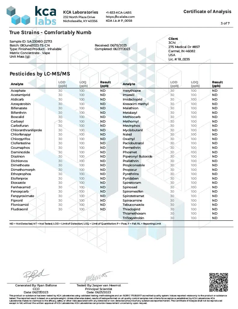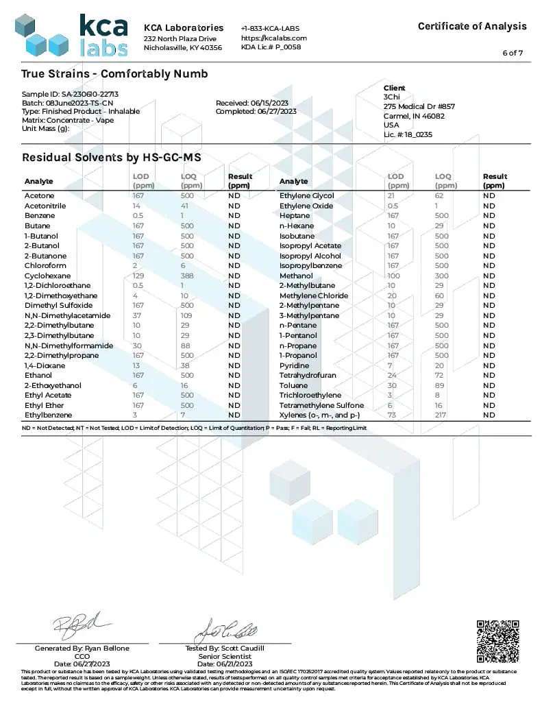 True Strains is 3CHI’s proprietary blend of cannabinoids and terpenes designed to replicate the effects of real cannabis strains.