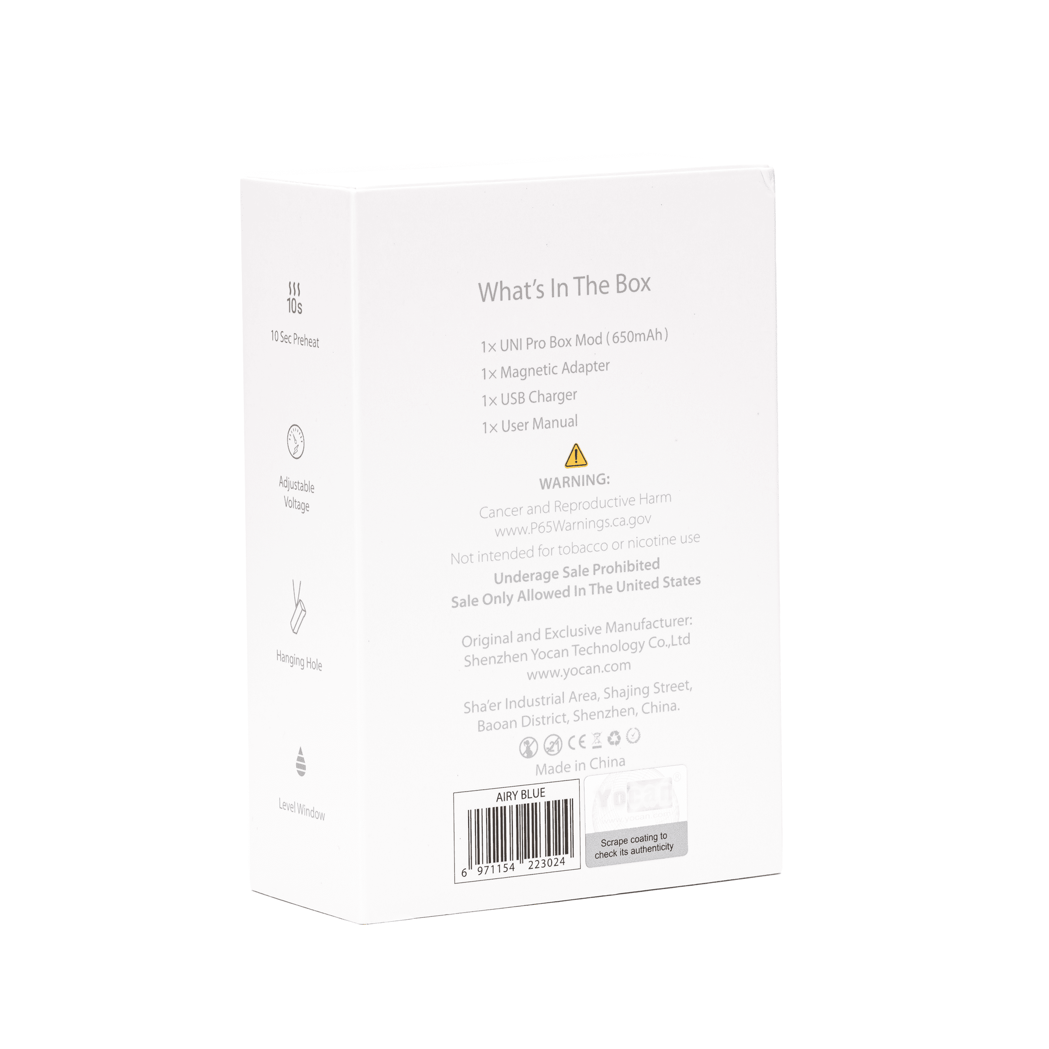The Yocan UNI Pro Universal Portable Box Mod Battery – Airy Blue is widely available at online vape retailers, dispensaries, and head shops. Be sure to purchase from authorized dealers to guarantee authenticity and warranty coverage.