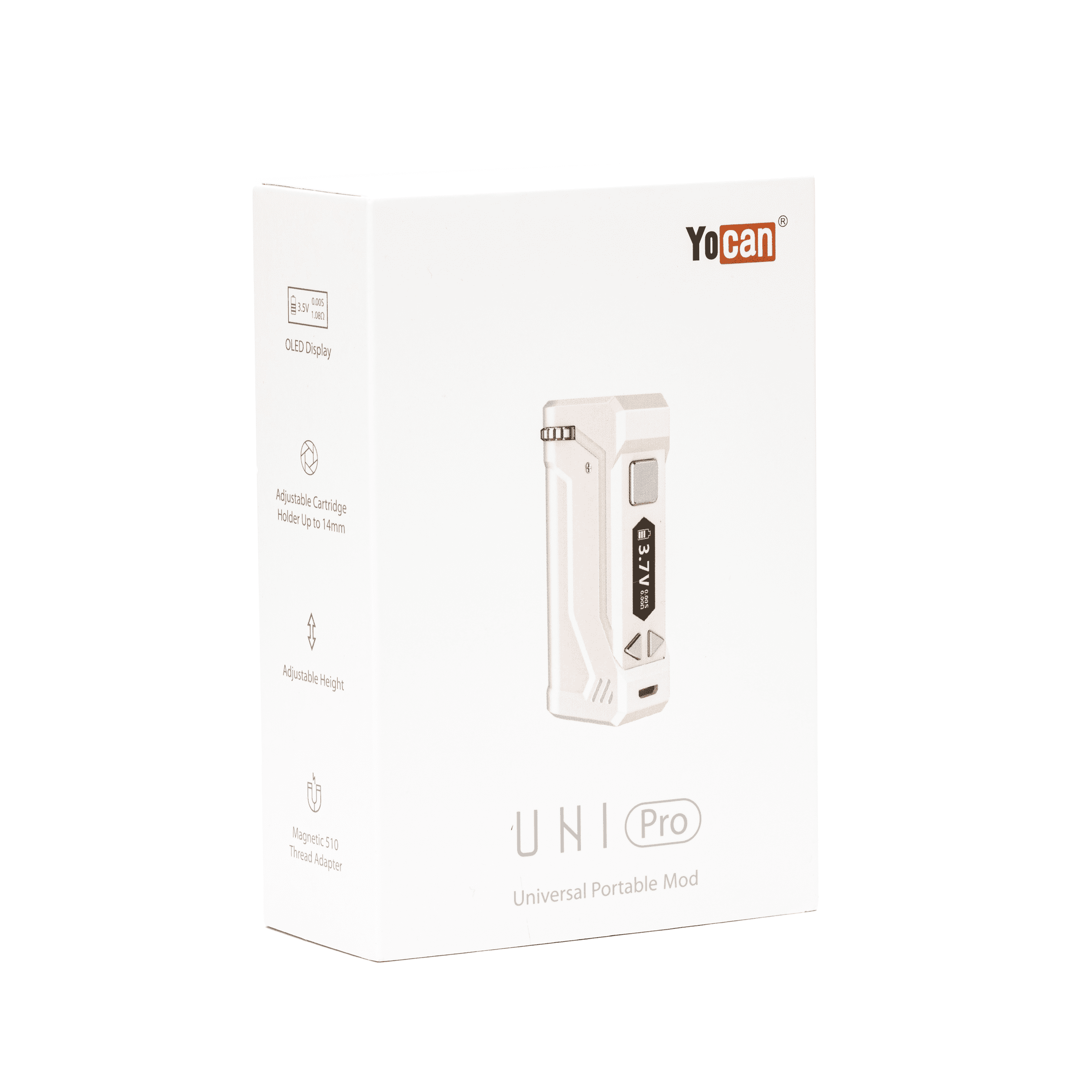 The Yocan UNI Pro Universal Portable Box Mod Battery – White is a revolutionary vaporizer battery that brings customization, power, and convenience to the palm of your hand. Designed with versatility in mind, this device is compatible with almost any oil cartridge on the market, making it a must-have for both beginners and experienced vapers. With its sleek White finish, adjustable voltage settings, and OLED display, the UNI Pro enhances your vaping experience while maintaining an ultra-portable design.